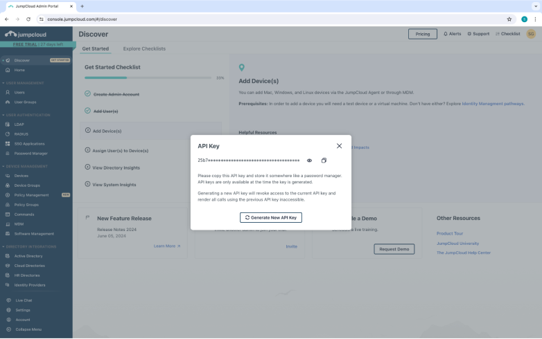 This will only appear to you once, so please make sure you copy the API Key showcased to you.
