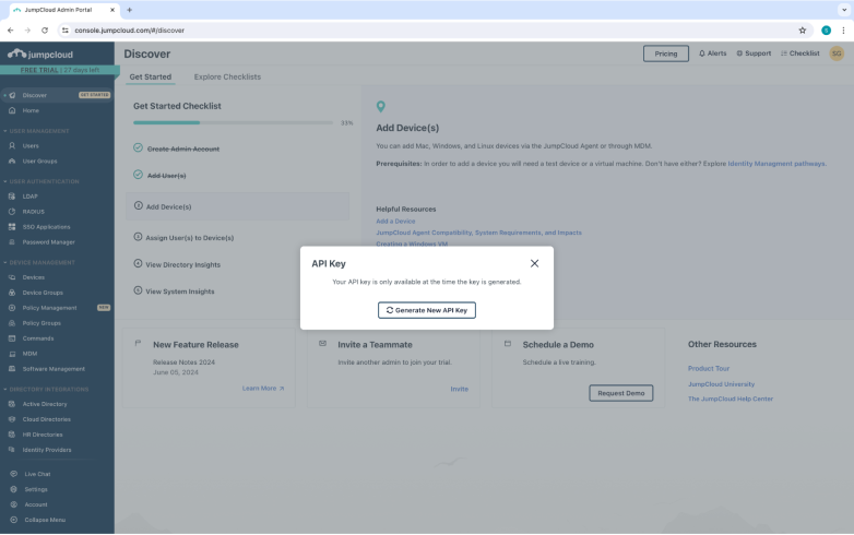 Upon clicking on My API Key, the following pop up will open. Click on “Generate New API Key”