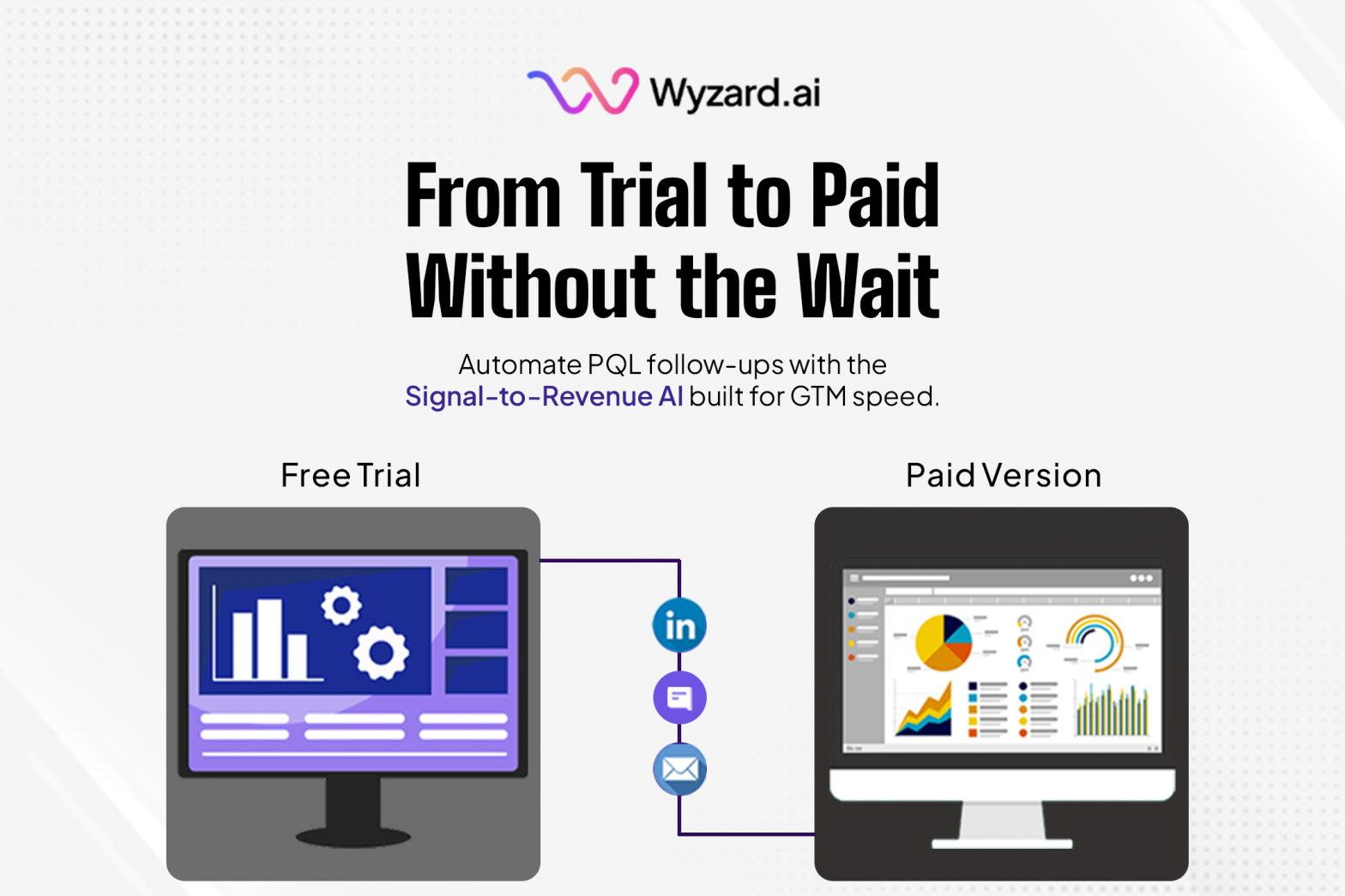 Wyzard, the Signal-to-Revenue AI, captures buyer intent the moment it happens – whether from product usage, website visits, LinkedIn ad clicks, webinar interactions, or scanned leads at events. Then, we trigger intelligent follow-ups across the right channels, turning signal into pipeline, automatically.