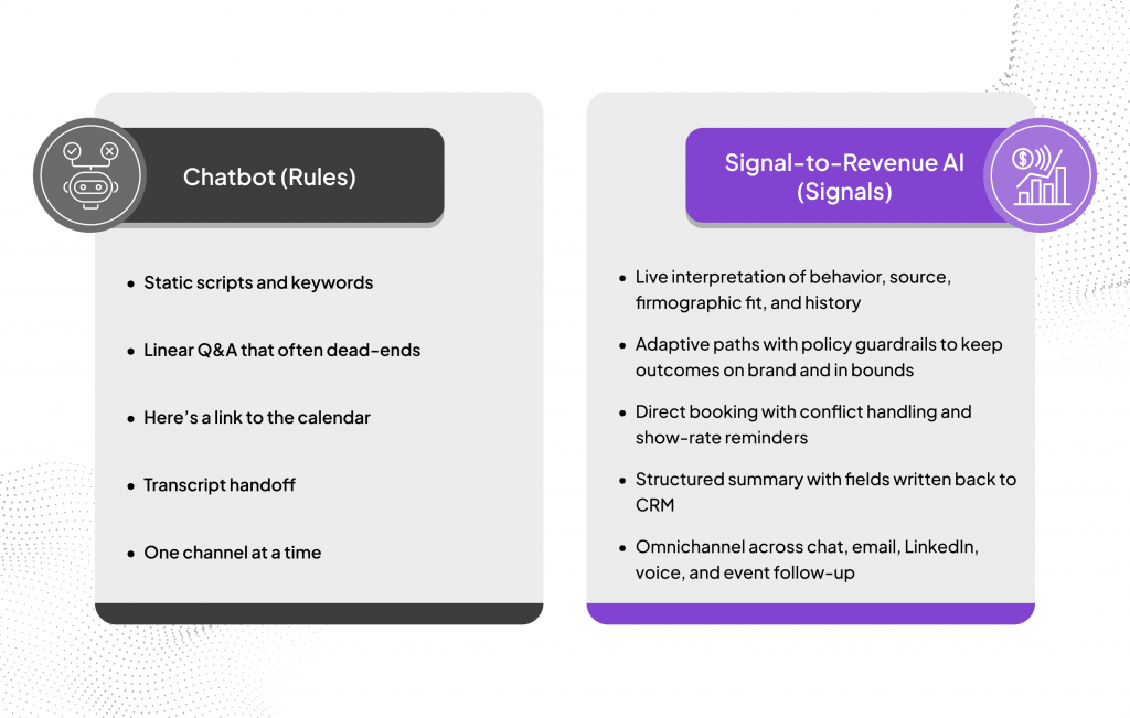 Signal-to-Revenue AI vs. Chatbots: How Signal-Driven Agents Qualify and Book