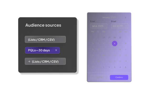 Turn a clear goal into a short, timely sequence. Pair a concise Email with a contextual LinkedIn message, set smart send windows, and guide prospects to a meeting while they’re still engaged.