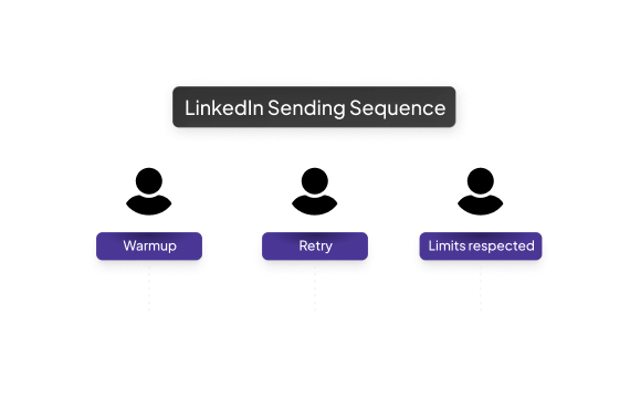 Email and LinkedIn — each with sequence steps suited to the channel. LinkedIn sequences include connection requests, personal messages, and InMail, with warmup and retries handled in the background.